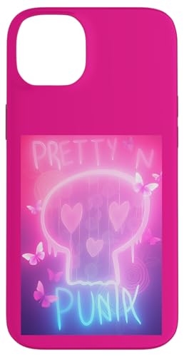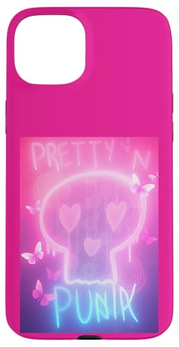 Pretty in Punk Pink Crâne Cœurs Papillons Esthétique Party Coque pour iPhone 15 Plus
