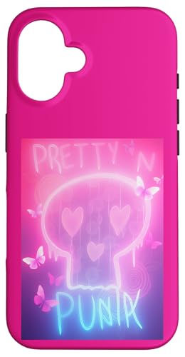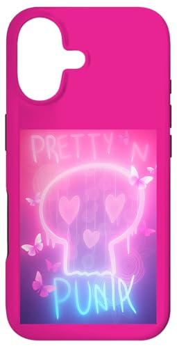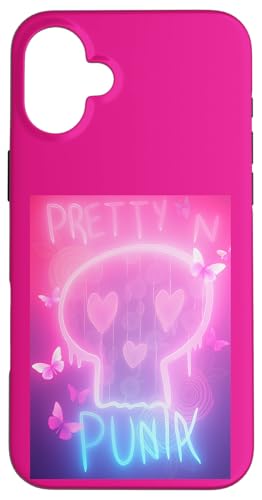 Pretty in Punk Pink Crâne Cœurs Papillons Esthétique Party Coque pour iPhone 16 Plus