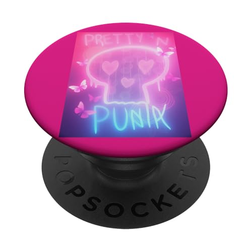 Pretty in Punk Pink Crâne Cœurs Papillons Esthétique Party PopSockets PopGrip Adhésif