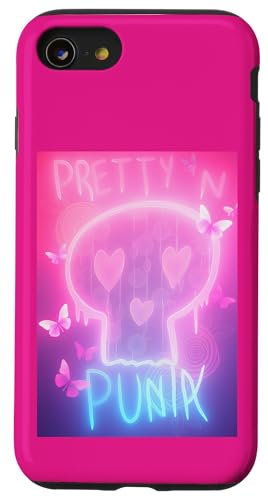 Pretty in Punk Pink Crâne Cœurs Papillons Esthétique Party Coque pour iPhone SE (2020) / 7/8