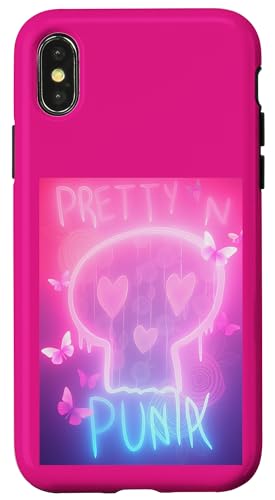 Pretty in Punk Pink Crâne Cœurs Papillons Esthétique Party Coque pour iPhone X/XS