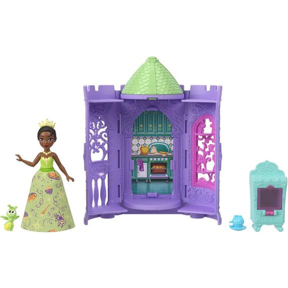 Mattel Jouets de princesse Disney, Château empilable de Belle Ensemble de jeu de maison de poupée avec petite poupée et 9 pièces, inspiré du film Disney, jouets de voyage et cadeaux pour enfants, JDP54