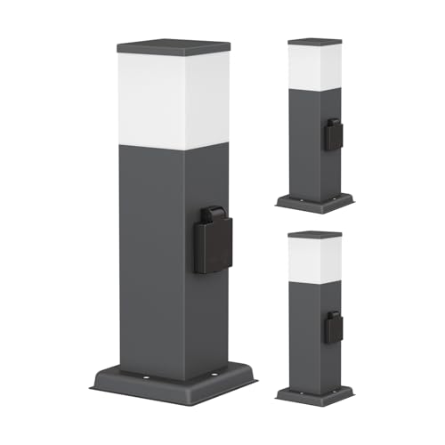 ledscom.de 3 pièces Borne d'éclairage POLLY pour l'extérieur, 35cm, anthracite, prise de courant, ampoule G9 incluse, 501lm, blanc chaud