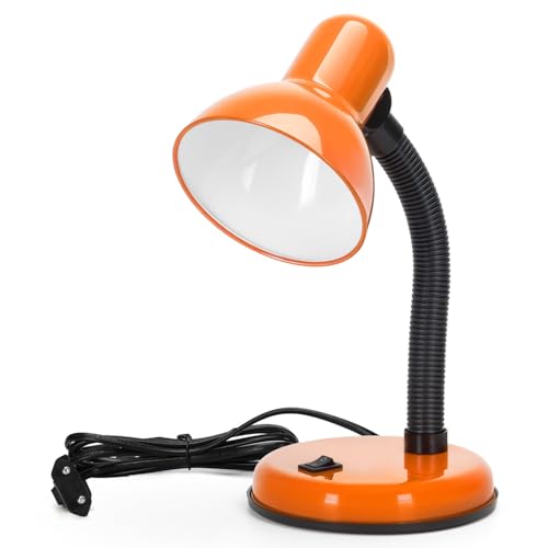 Aigostar Vintage Lampe de Bureau, Lampe de Table Retro avec Prise, Sans Ampoule, Compatible avec Les Ampoules LED Modele E27, Colonne de Lampe Reglable, Orange
