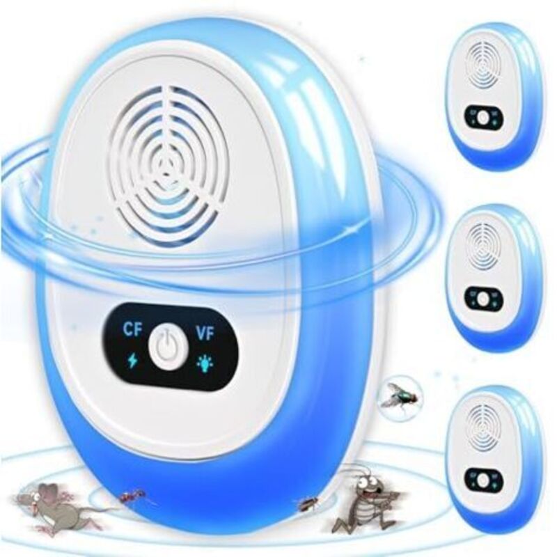 Lot de 4 répulsifs anti-nuisibles à ultrasons - idéal pour les souris et les rats, efficace contre les cafards, les fourmis, les moustiques, les