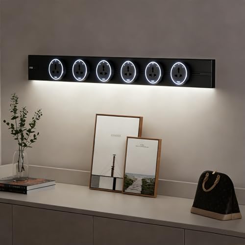 JSMDLN Multiprise longue de 40/50/60/80 cm, 8000 W, prise sur rail avec bloc d'alimentation + port de charge USB de type C + détecteur de mouvement, multiprise murale pour cuisine et salon, noir, 60