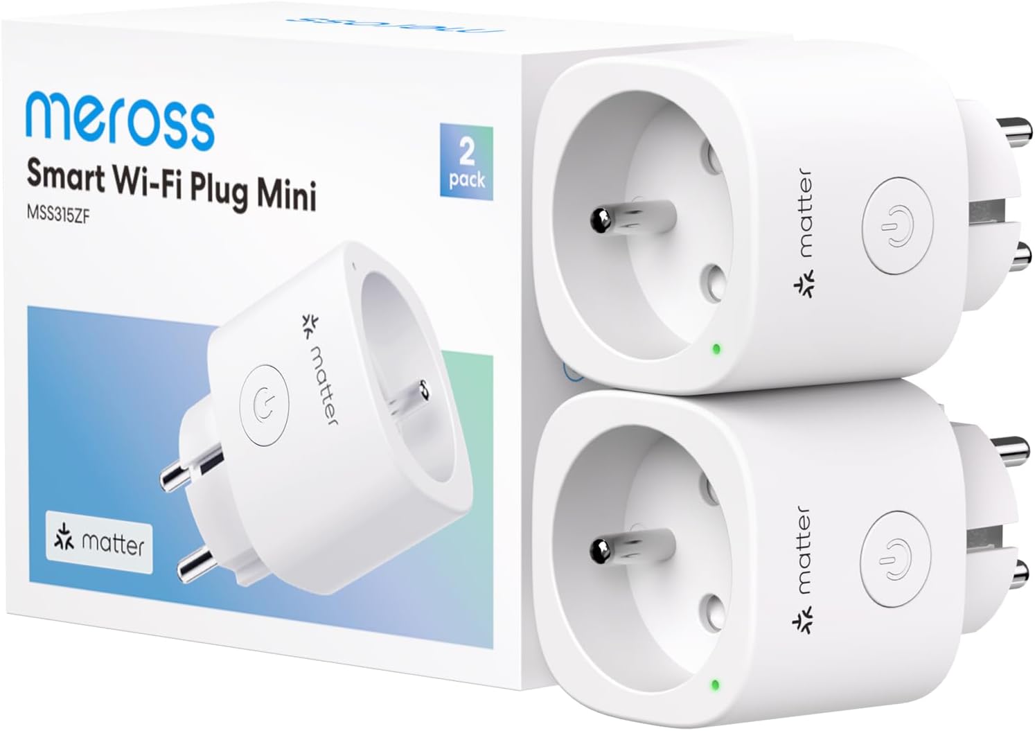JEXNOVASHOP-Meross Prise Connectée Matter (Type E), 16A Prise WiFi Compatible avec Apple HomeKit, Alexa, Google Home et Home Assistant, Mesure d'Énergie pour Panneau Solaire Photovoltaïque, 2 Pièces