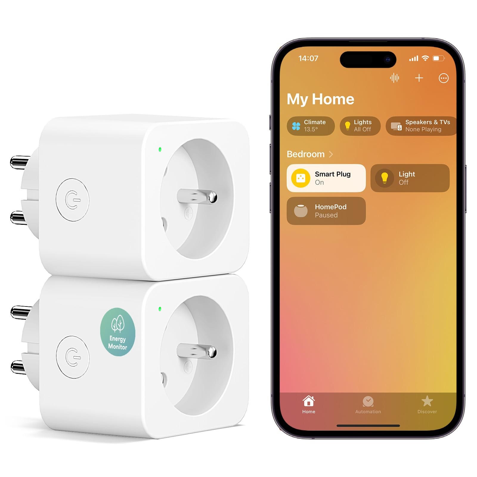 Prise Connectée (Type F), Prise Intelligente Compatible avec Apple HomeKit, S...