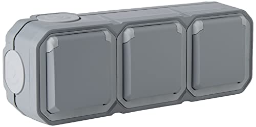 Legrand - Triple prise de courant avec terre étanche précâblée avec volet Plexo 16A 250V livrée complète pour montage en apparent horizontal gris