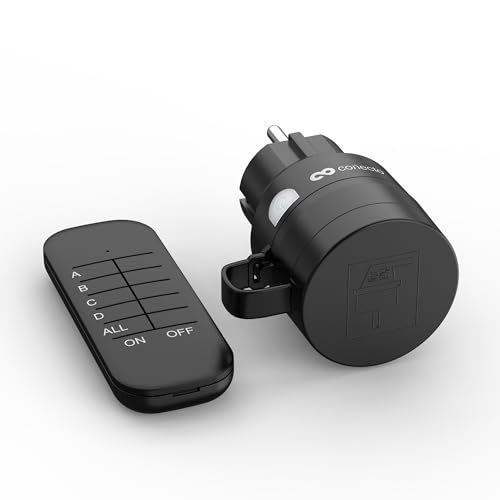 conecto prises de courant radiocommandées avec télécommande extérieure, 2300 W, 230 V, 1 prise de courant avec radiocommande, set d'extérieur, IP44, économie d'énergie, portée 30 m, noir