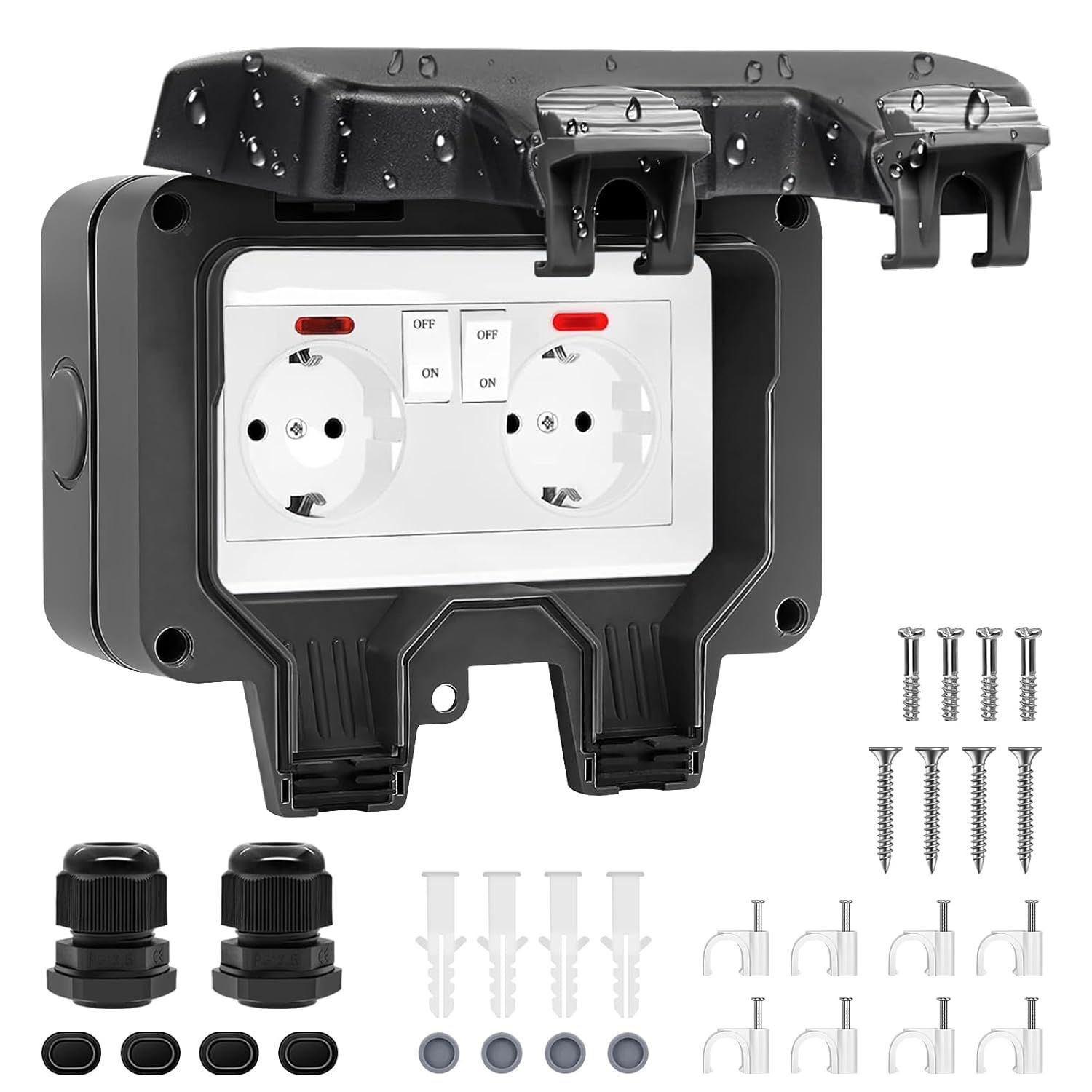 EIOMR Boîte anti-poussière étanche IP66, prise de courant commutée extérieure, boîte de prise de courant adaptée aux jardins extérieurs, salle de bain à domicile