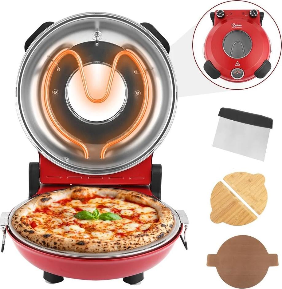Four à pizza électrique - Appareil de table - Diamètre 30 cm - 1200 W - Pierre céramique émaillée - Réglage de la température à deux boutons - Jusqu'à 420 °C - Prise UE - Or