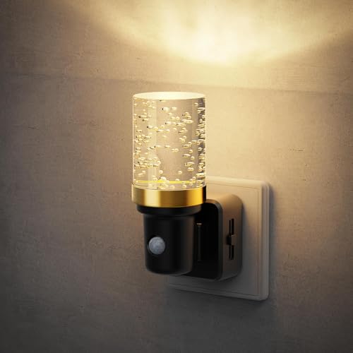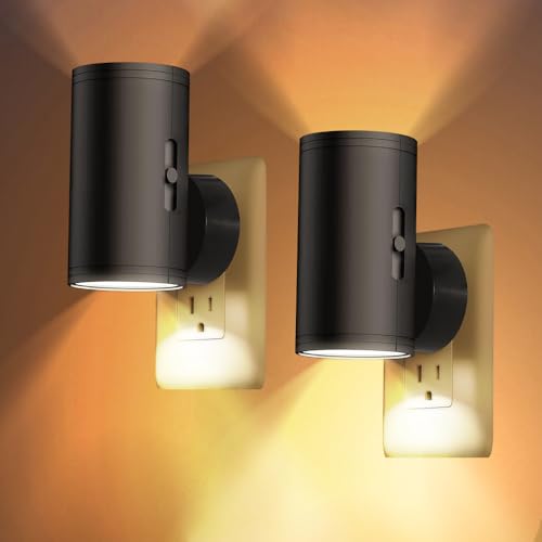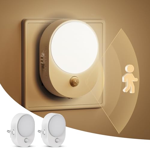 YUNLEX 2 Pcs Veilleuse Prise Électrique avec Détecteur de Mouvement, 3 modes de capteur, Luminosité réglable, pour les enfants, salle de bains, chambre à coucher, couloir, cuisine, Ambre