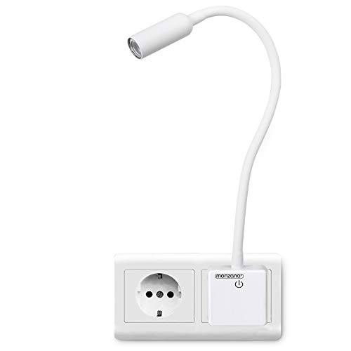 Monzana Lampe LED lampe de lecture murale Blanc avec prise électrique veilleuse 46,5cm 4W 5000K liseuse lampe chevet bureau