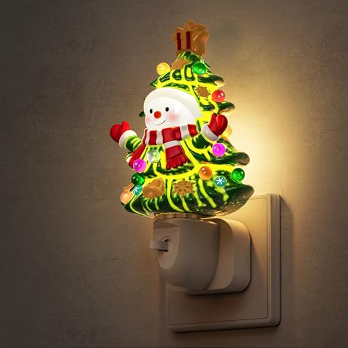 Emeritpro Sapin de Noël Veilleuse, Bonhomme de Neige Veilleuse Prise Electrique, 3000K Blanc Chaud pour Les Cadeaux de Noël, Les Chambres D'enfants, Les Couloirs et Les Escaliers, 1 paquet, 60LM, 0.6W