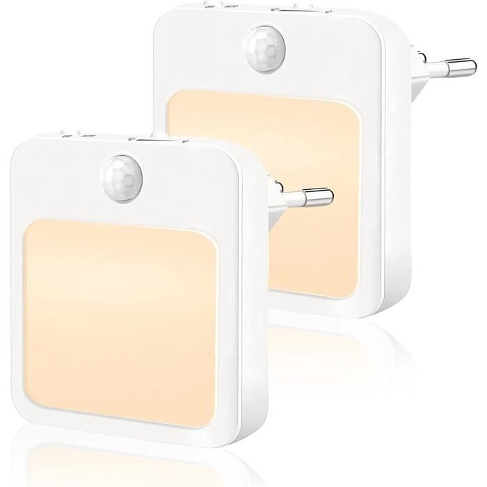 Pack de 2 Veilleuse LED Prise Electrique avec 3 Modes déclairage avec Detecteur Mouvement pour Chambre salle de bain Cuisine