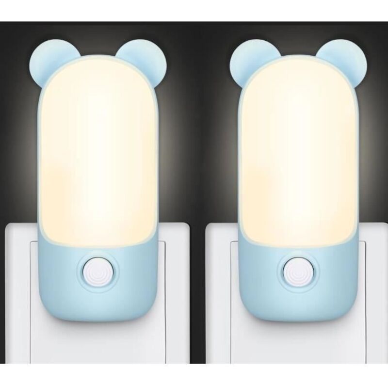 (Bleu)Lot de 2Veilleuse Prise Electrique, Veilleuse pour Enfants avec 2 Modes, LED Lampe de Nuit Allaitement pour Décoration de Chambre