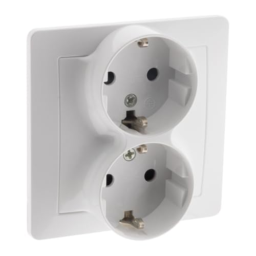 Electraline 22110 Bloc de prise encastrée/set plaque prémontée 2 places (1 prise universelle P40 + 1 prise bivalente 10/16A), deux vis de montage, blanc