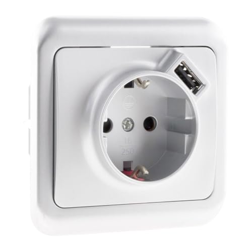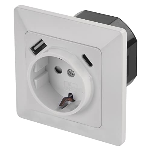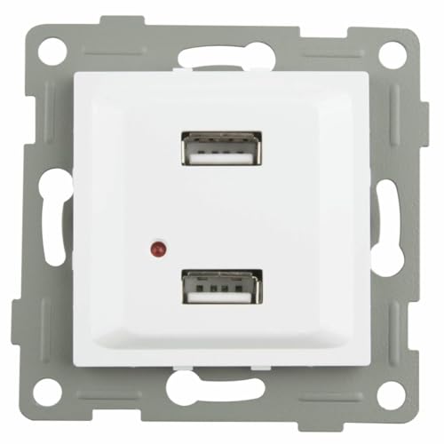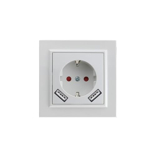 Glowster B1222952 Prise encastrée Schuko blanche avec double USB - Charge rapide pour appareils mobiles et connexion électrique dans les espaces restreints, Image