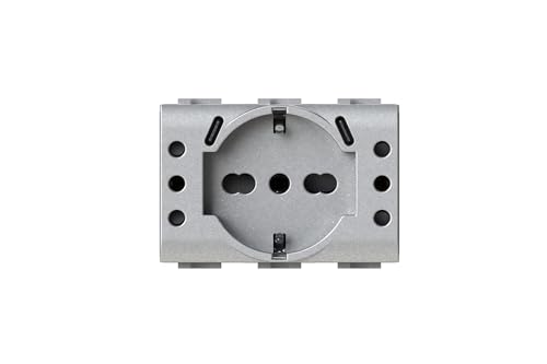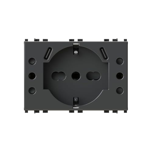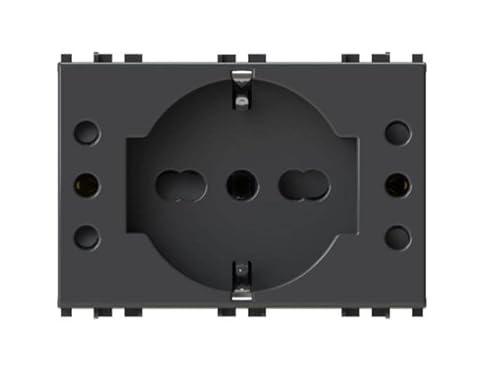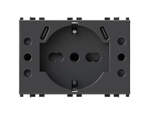 4box - Prise encastrée Side XL Compatible avec Bticino® LivingLightTM 4 Prises en 1 : Permet de connecter Une fiche schuko et Une fiche 10/16A ou Trois Prises 10/16A. Couleur Anthracite