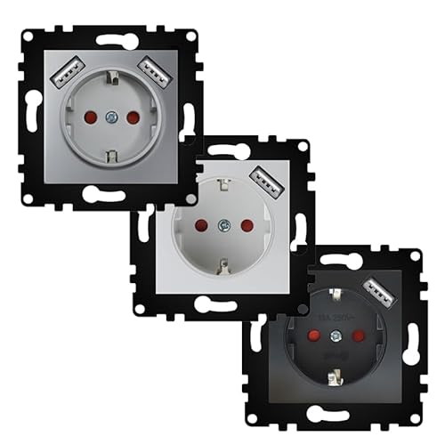 Prise : prise encastrée en graphite, double port USB, idéale pour une charge rapide, design élégant et moderne, installation facile