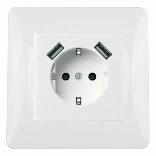 Prise murale encastrée Schuko type F, blanc, 2 prises USB 16/A 2.4A
