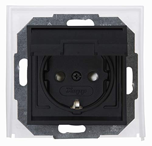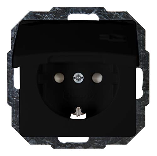 Kopp Paris Prise de Contact de Protection avec Couvercle - Noir Mat - 1 Prise encastrable avec Protection de Contact Accrue - IP20 avec Rabat - Prise encastrée de qualité supérieure 16 A / 250 V~