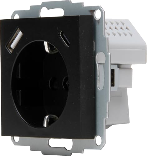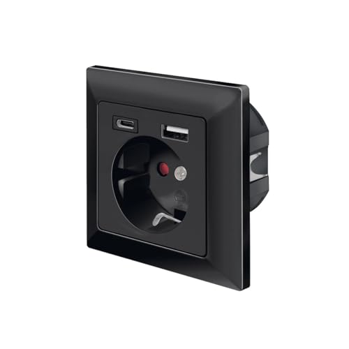 LogiLink PA0262B - Prise encastrée avec 1 Prise de Contact de Protection (CEE 7/3), USB-A et USB-C, Couleur : Noir