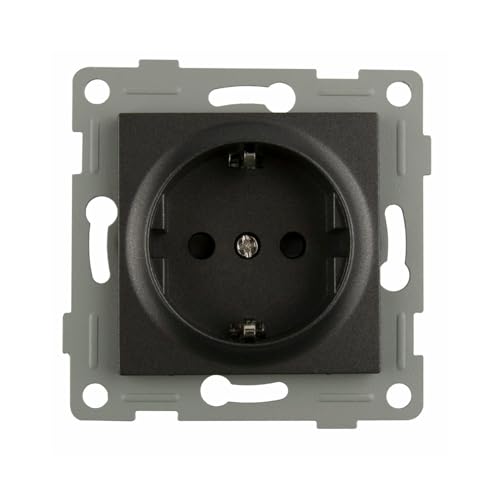 Kopp ATHENIS Prise de contact de protection en noir mat - Prise encastrable sûre à 1 prise avec protection de contact accrue - Prise encastrée IP20 avec contact de protection - Prise encastrée 16 A