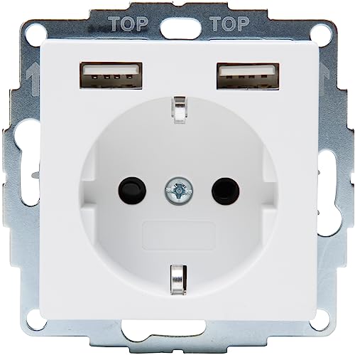 Kopp HK07 - Prise de courant encastrée avec 2 prises de charge USB, couleur blanc arctique mat - (1 pièce)