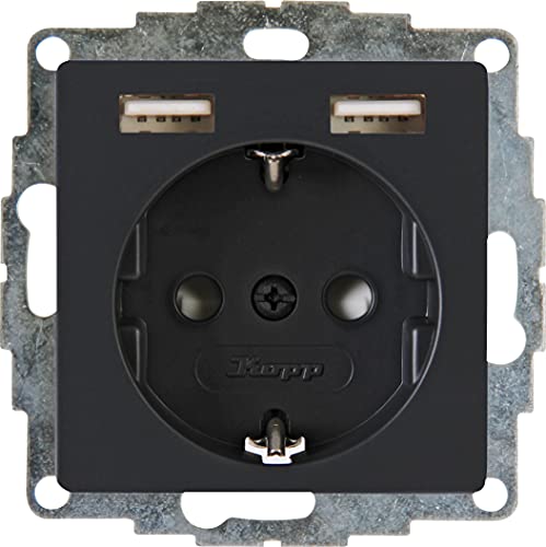 Kopp HK07 - Prise de courant encastrée avec 2 prises de charge USB, couleur : noir mat - (1 pièce)