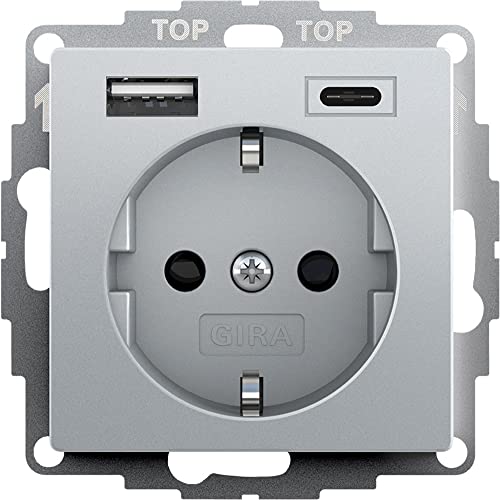Gira 245926 Prise Schuko USB Shutter Protection Contact 2 prises type A (max.2,4 A) Type C (max.3A) Système 55 Alu UP Prise murale encastrée pour smartphone tablette 32 mm