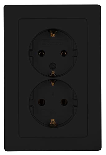 Prise encastrée - type Schuko double, couleur noire, dimensions 126 x 85 x 50 mm, idéale pour installations électriques modernes, fonctionnelle et sûre. *