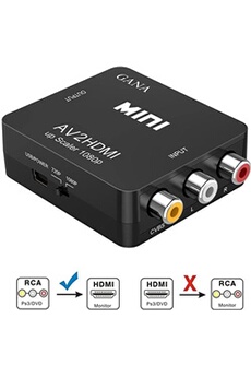 Adaptateur RCA vers HDMI, GANA Convertisseur vidéo Mini AV vers HDMI Prise en Charge 1080P 3RCA Composite avec câble de Charge USB pour PC Xbox PS3