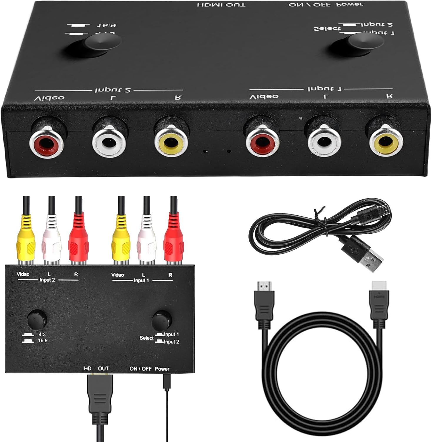 Convertisseur Rca Vers Hdmi - Adaptateur Av Double Pour Wii, N64, Ps1, Ps2, Ps3, Stb, Xbox, Vhs, Vcr, Dvd - Prise En Charge 1080P 60 Hz, 16:9/4:3