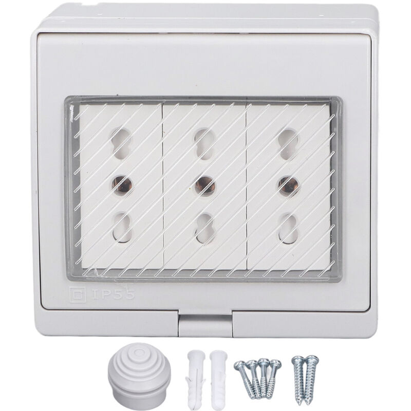 Jeffergarden Prise murale étanche IP55, boîtier anti-poussière et ignifugé, 3 ports, pour extérieur, fiche italienne 110-250 V