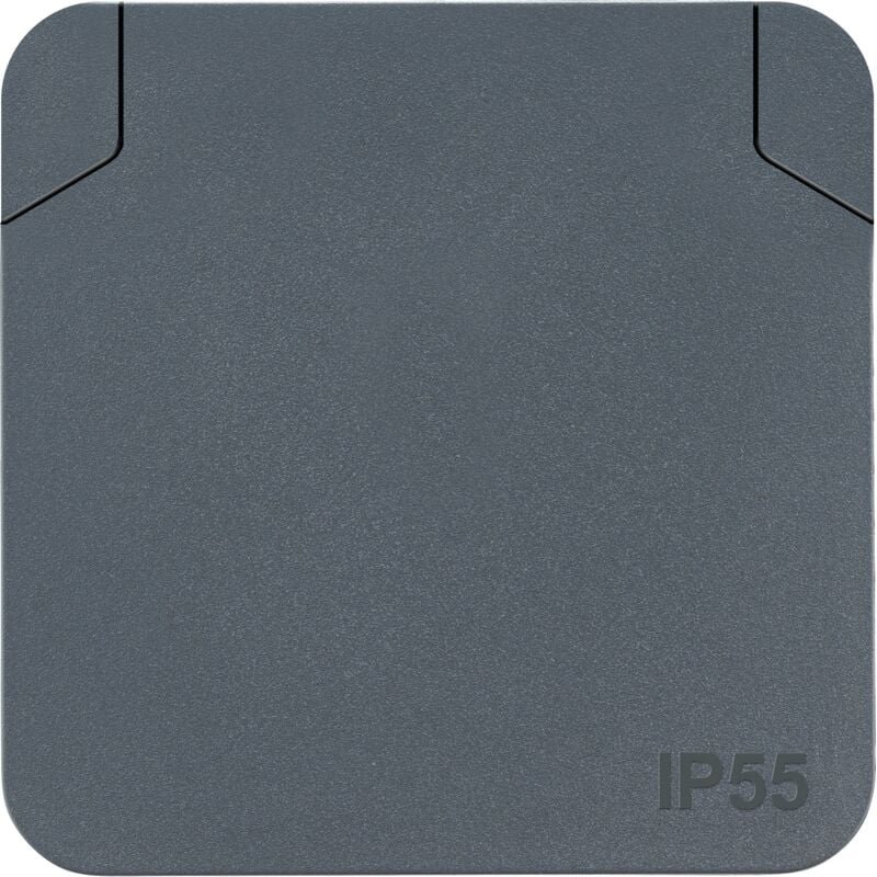 4box - Coque large indice de protection IP55 avec prise schuko bivalente. Pour boîtier encastré 3 modules. Protection totale même à prise insérée. Couleur anthracite