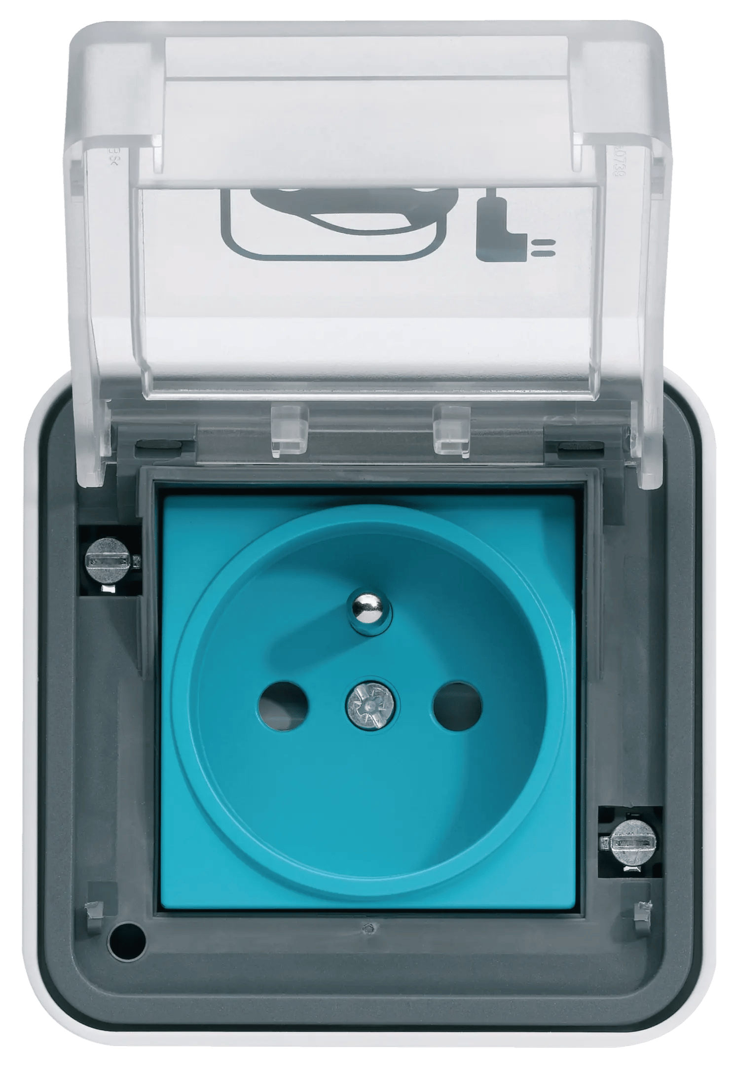 Base de prise IP55, étanche à l'eau et à la poussière, idéale pour l'extérieur et les zones humides. Utile pour les installations électriques sécurisées.