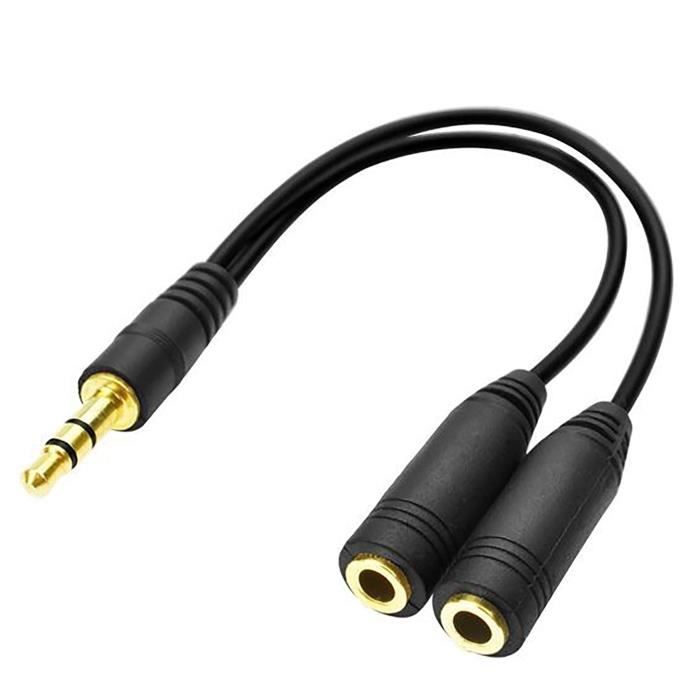 D2 Diffusion Jack 3,5mm Mâle vers 2 x Jack 3,5mm Femelle 0,20m