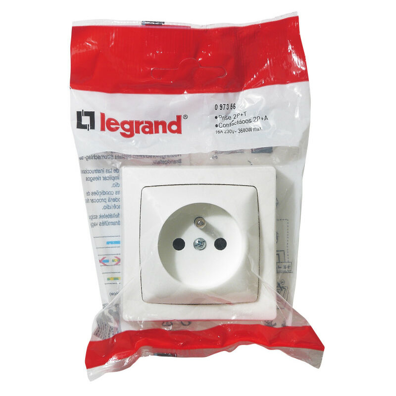 Legrand – Prise de courant 2P+T blanc 16A 250V – Protection enfant – Indice IP20 – Installation encastrée ou saillie – Compatible supports Batibox