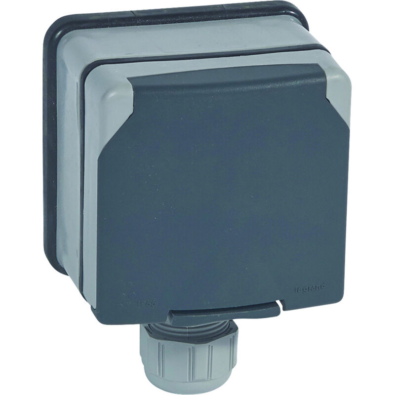 Legrand - Prise de courant étanche ouv, auto, avec clapet de Protection IP55 complet saillie - Plexo - Gris
