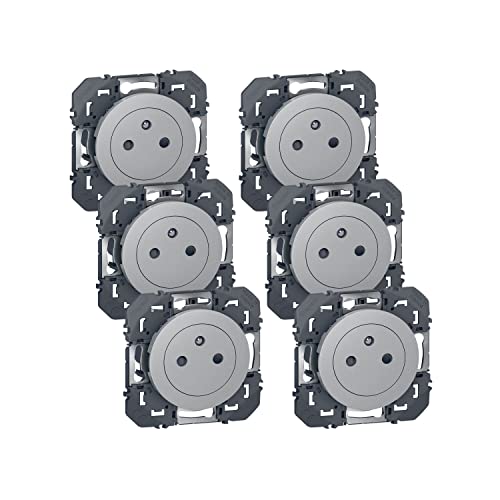 LEGRAND - Prise Electrique Murale 16A avec Terre dooxie Surface - Prise 2P + T Affleurante avec Fond Rétractable - Fabriqué En France - Alu - Lot de 6
