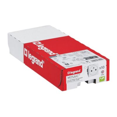 Prise de courant 2 poles avec terre Legrand Mosaic sans plaque blanc - 10 pièces
