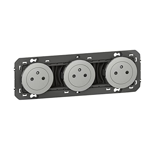 LEGRAND - Prise Triple Murale 16A avec Terre dooxie Surface - Prise 2P + T Affleurante avec Fond Rétractable - Fabriqué En France - Alu