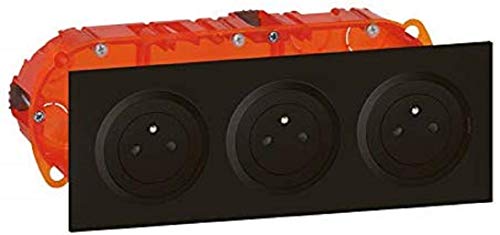 LEGRAND - Prise Triple Murale 16A avec Terre dooxie Surface - Prise 2P + T Affleurante avec Fond Rétractable - Fabriqué En France - Noir