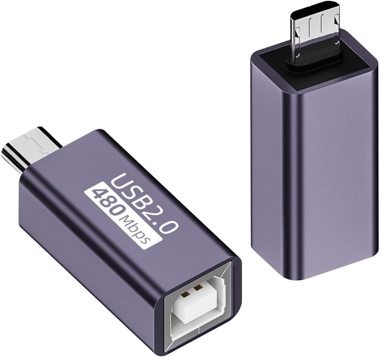 QIANRENON Connecteur d'imprimante Micro USB mâle vers USB B Femelle Prise Micro USB vers Prise MIDI Adaptateur d'instrument électronique 480 Mbps 7 W Charge, boîtier en Aluminium, pour Scanner d'impr