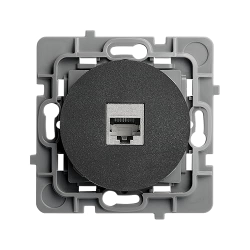 Prise Réseau Murale Encastrée RJ45 Cat.6 avec 1 Port Ethernet-Prise Murale Noir Métallique pour Bureau,Maison,Routeur-Compatible avec Les Séries KARELL/ODAK/COMFORT-253/14E