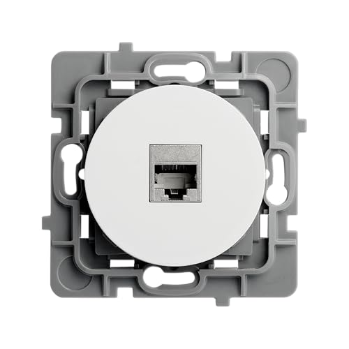 Prise Combinée Murale Encastrée RJ45 Cat.6 + RJ11 Blanc-1 Port Ethernet Internet et 1 Port Téléphone-Prise Réseau Téléphonique Intérieure-Compatible KARELL/ODAK/COMFORT-256/01E