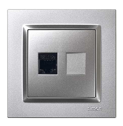 SIMON - Prise RJ45 Cat. 5e, prise à encastrer, connecteur de câble Ethernet, prise murale encastrable, série Simon 10, facile à installer, avec cadre, couvercle et mécanisme, couleur aluminium