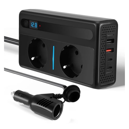 Convertisseur Convertisseur Tension Voiture 300W 12 V DC À 230 AC avec 4 Ports USB Chargeur Charge Rapide Prise Allume-Cigare Onduleur